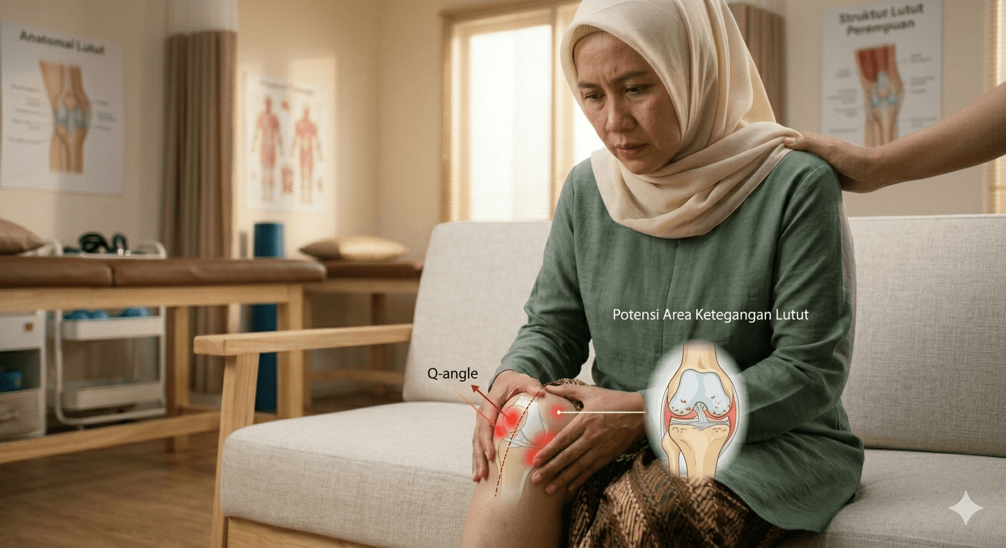 Nyeri lutut pada perempuan sering kali dipengaruhi oleh biomekanika tubuh yang berbeda. Secara anatomis, perempuan memiliki panggul yang lebih lebar, yang menciptakan sudut yang lebih besar (sudut Q) antara tulang paha dan tulang kering. Sudut Q yang lebih besar ini menempatkan stres tambahan pada sendi lutut, terutama pada tempurung lutut (patella), yang meningkatkan risiko kondisi seperti sindrom nyeri patellofemoral. Selain itu, fluktuasi hormonal selama siklus menstruasi, kehamilan, dan menopause dapat memengaruhi elastisitas ligamen, menjadikannya lebih longgar dan meningkatkan kerentanan terhadap cedera ligamen pergelangan kaki dan lutut. Perbedaan-perbedaan mendasar ini menjelaskan mengapa keluhan sendi ini tidak boleh disamakan atau diabaikan begitu saja pada populasi perempuan.