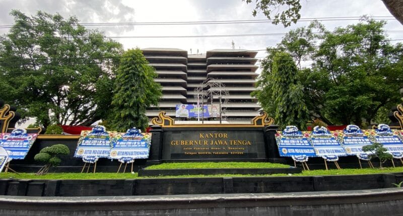 Karangan Bunga Ucapan atas Pelantikan Ahmad Luthfi-Tajyasin, Mulai Berjejer Di depan Kantor Gubernur Jawa Tengah